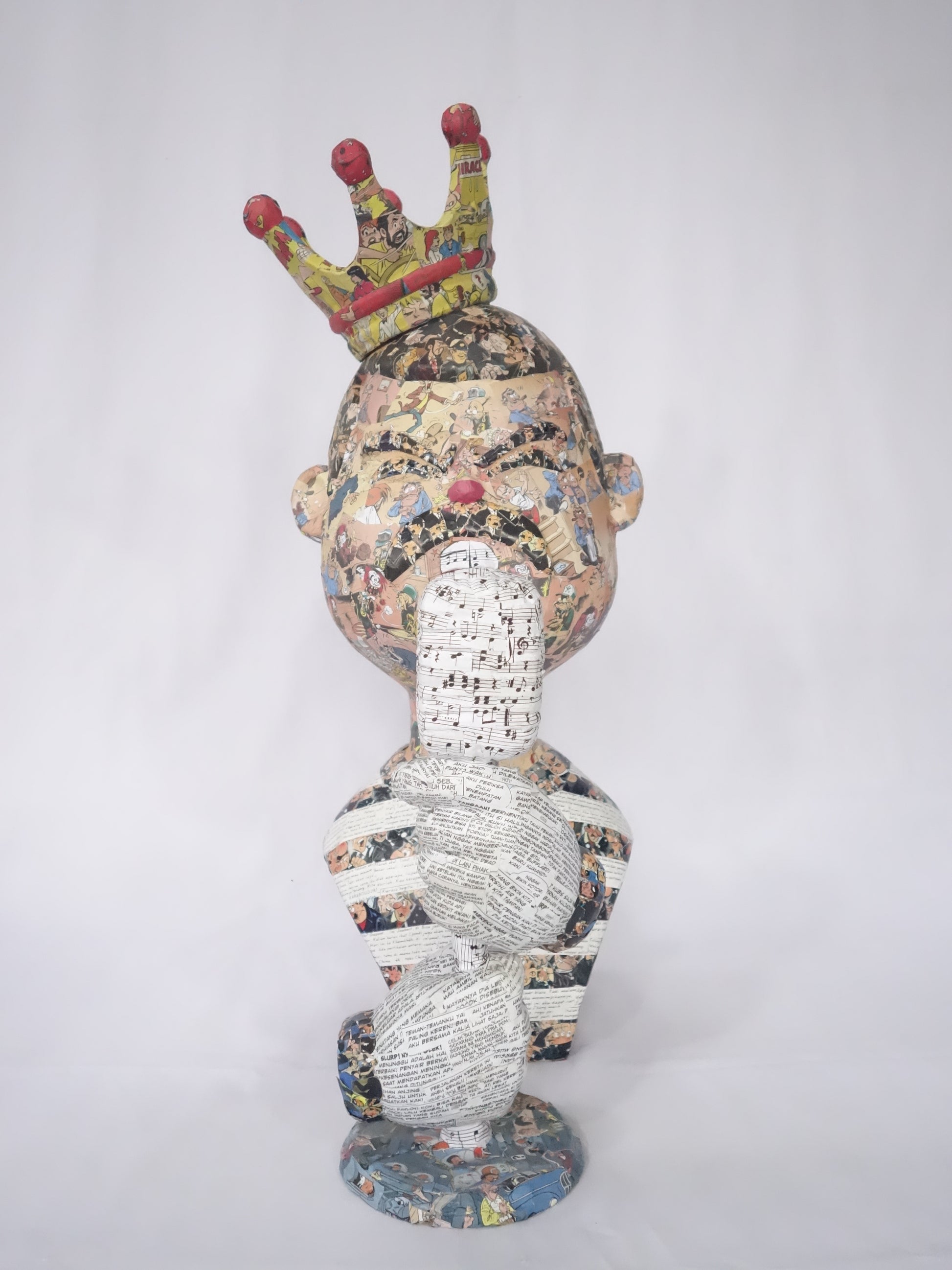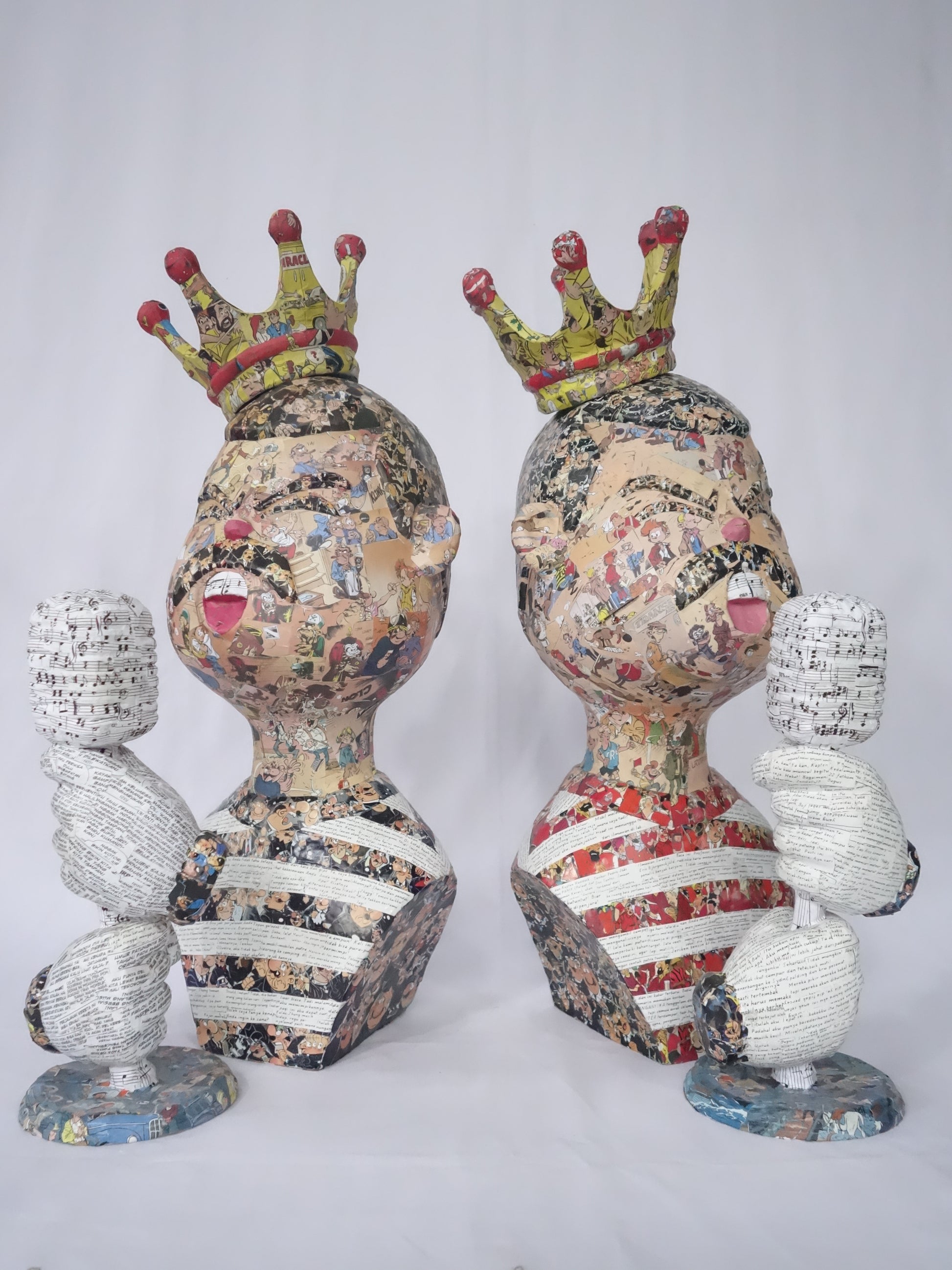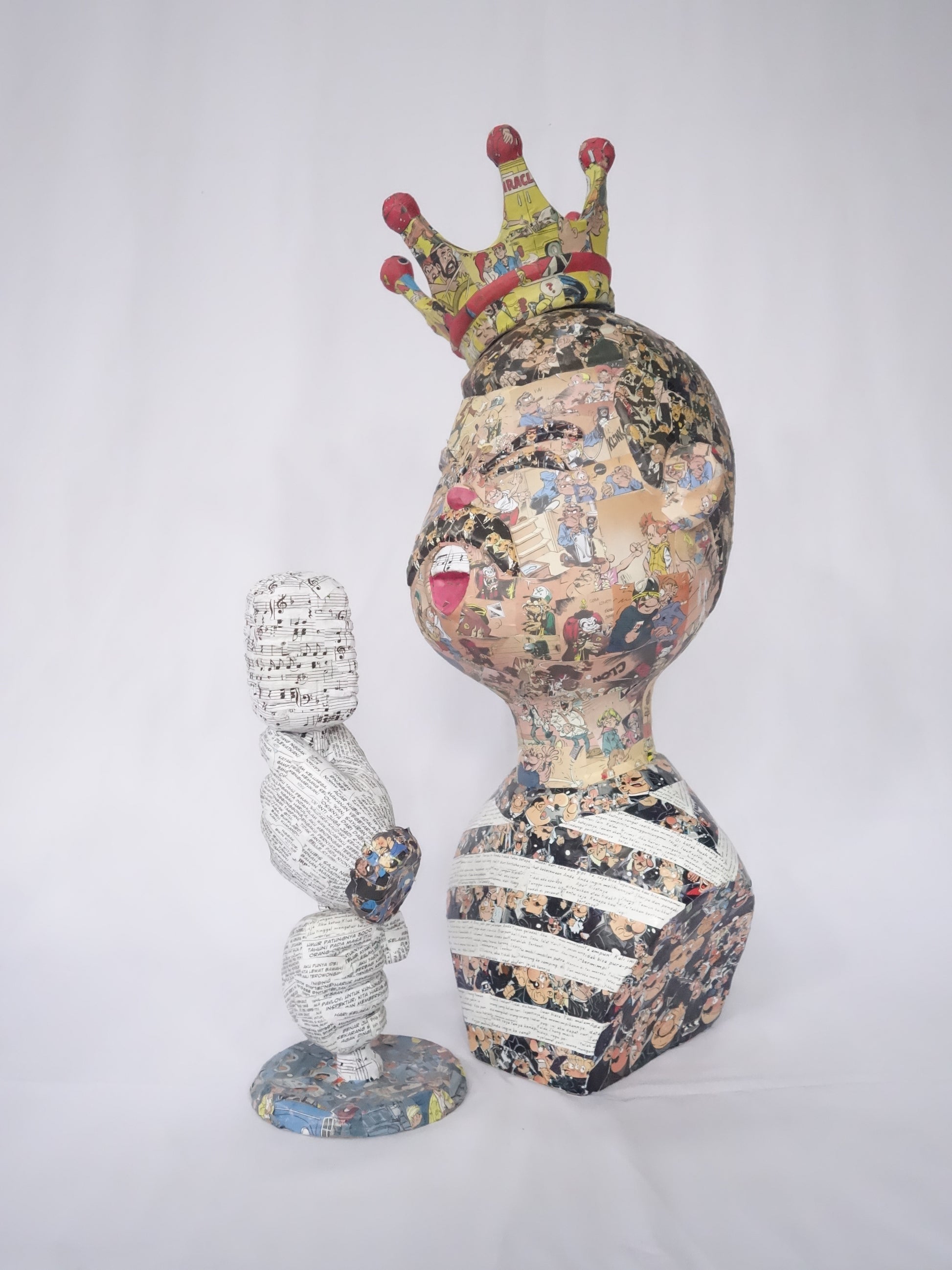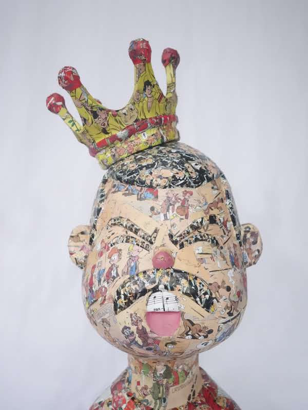 Using the humble medium of papier-mâché, and covered with vintage comic books pages, these women transform recycled paper into fine art, blending sustainability with soulful craftsmanship. This initiative is more than just art; it’s a movement. Every sculpture purchased directly contributes to empowering local women, providing them with economic opportunities and recognition through creative expression.