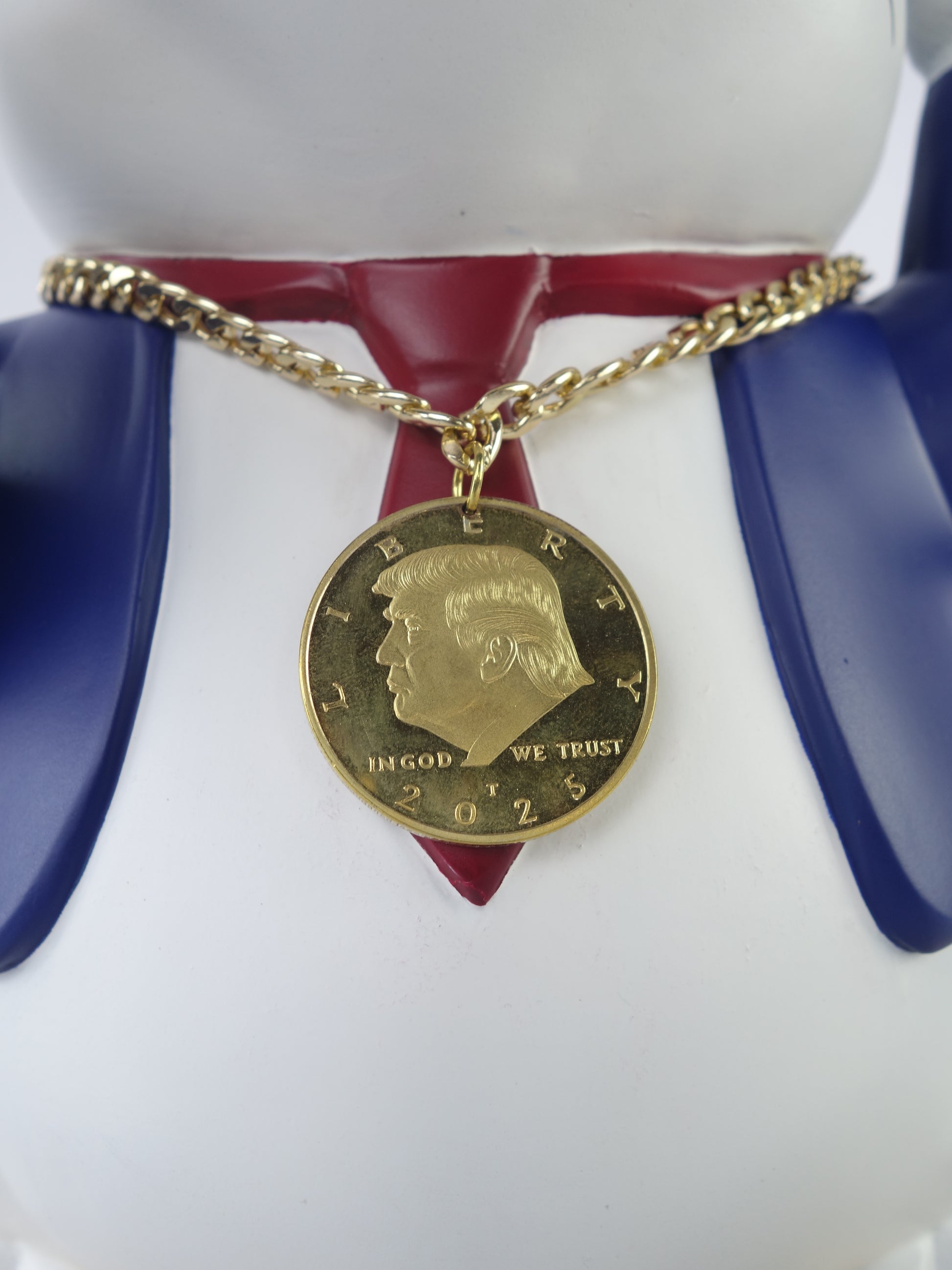 "Lucky Trump Cat" is a bold fusion of traditional Maneki-Neko symbolism, political satire, and modern commentary on wealth and power. Standing triumphantly atop a pile of gleaming US and Yuan gold coins, this meticulously crafted resin sculpture represents the pursuit of fortune on a global scale.